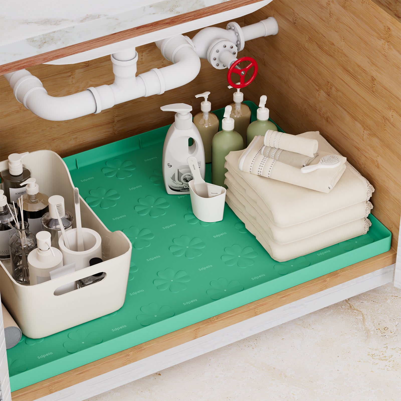 - Durable & Easy to Install: The Sdpeia under-sink mat is built for long-lasting performance using high-quality liquid silicone. Designed to withstand daily wear and tear, it protects your cabinets and floors for years. Cleaning is effortless—just wipe it down with a damp cloth. The mat also easy to clean, ensuring a hygienic and hassle-free solution.